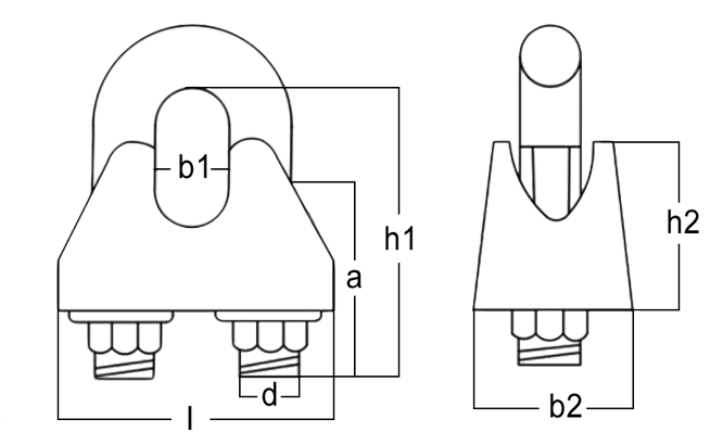 | mm | a | b1 | b2 | d | h1 | h2 | I | |